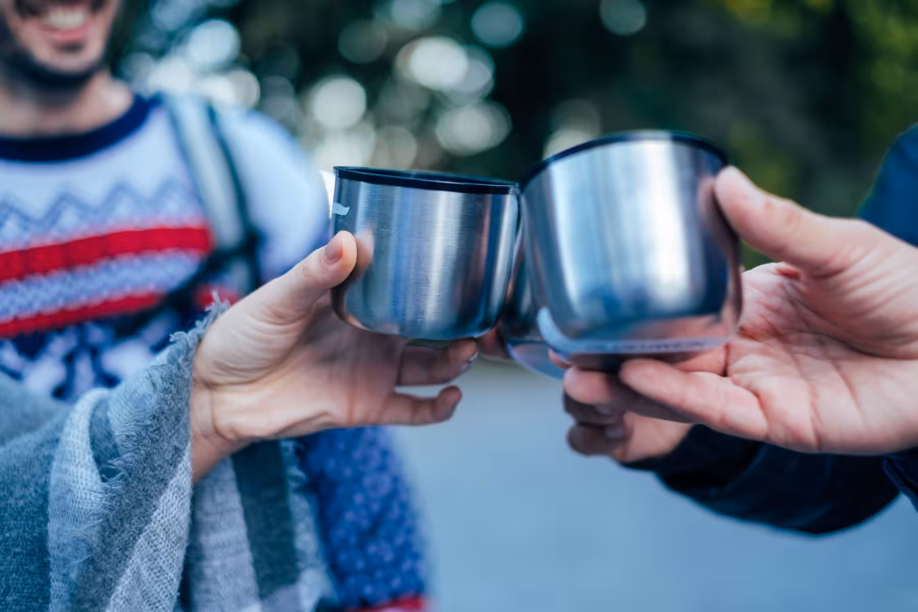 Expeditionsrucksäcke mit heißen Getränken