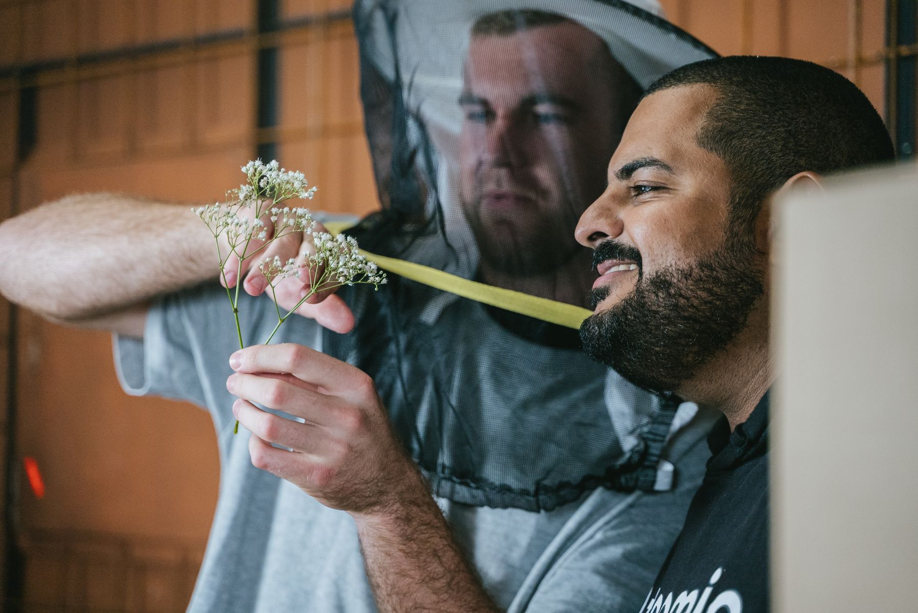 Neben unseren Moderatoren begleitet ein Imker das digitale Teamevent. Dieser teilt wertvolles Hintergrundwissen zum Natur- und Artenschutz und stellt die potenziellen Bewohner der Insektenhotels vor.